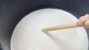 Through the washing and soaking process, the rice is carefully infused with the right amount of moisture to create soaked rice, which is then gently and meticulously steamed. The result is ideal steamed rice, known as "outer hard, inner soft" (外硬内軟), where the outer layer is firm and the inside is soft, ensuring the perfect texture for fermentation.